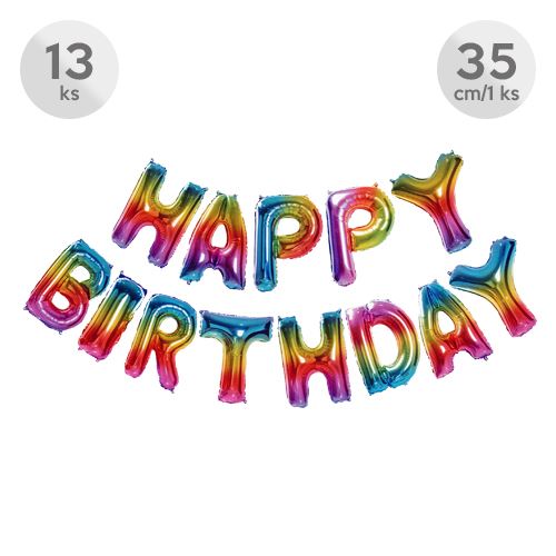 Narodeninový balón HAPPY BIRTHDAY. Veľkosť písmena 35 cm. Balenie obsahuje každé písmeno samostatne. Súčasťou balenia nie je šnúrka na zavesenie.