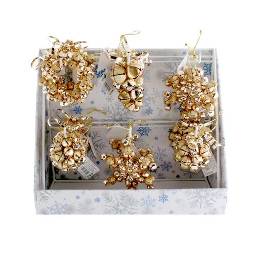 - Dekorácia závesná - Rôzne druhy v stojane, zlaté 9-11 cm, set 16ks