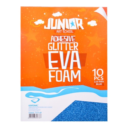 Dekoračná pena samolepiaca EVA pre kreatívne tvorenie. Formát A4 s hrúbkou 2.0 mm. Sada obsahuje 10 ks. Farba: Glitter modrá.