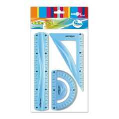 Sada ohybných pravítok 3ks obsahuje 1x pravítko 20cm, 1x pravítko pravouhlé 14,5cm a 1x uhlomer. Sada je vyrobená z pevného a odolného materiálu.