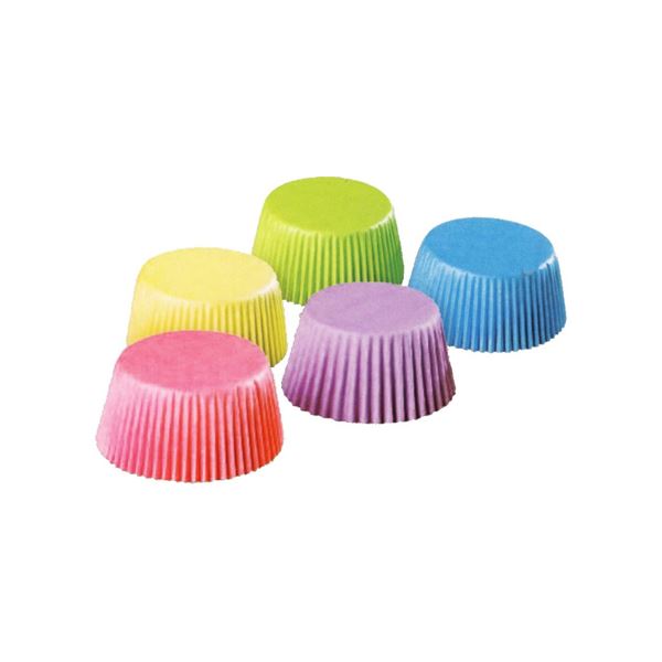 Cukrárenské košíčky farebné mix, vhodné na pečenie do 220°C; priemer 50 mm, výška 27 mm; dodávané v papierovom boxe po 100 ks.
