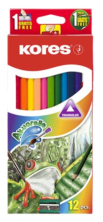 - Akvarelové pastelky, so strúhadlom a štetcom, KORES, 12 rôznych farieb