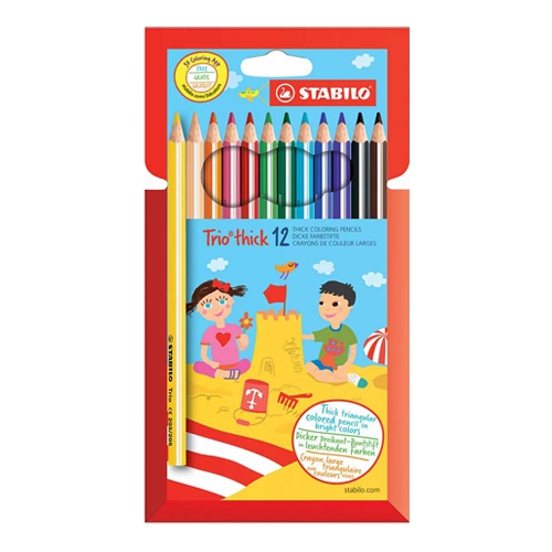 STABILO Trio 12 ks balenie - hrubé pastelky sú ideálne pre malých umelcov, ktorí si radi kreslia. STABILO Trio hrubé majú trojhranný tvar a sú navrhnuté tak, aby sa deťom dobre držali a pomohli naučiť ich správne používať písacie potreby. Typickým znakom je trojhranný tvar, ktorý sa dobre drží a navádza ku správnemu úchopu. Majú intenzívny výdaj farby.