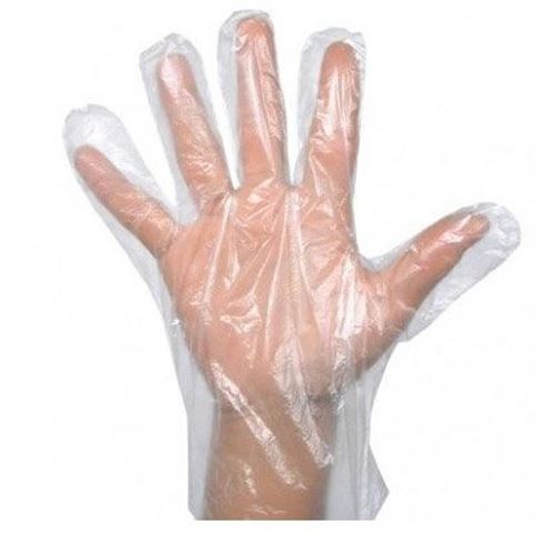 Hygienické rukavice na jedno použitie veľkosť L, materiál HD-PE; dodávané v balení po 100 ks.