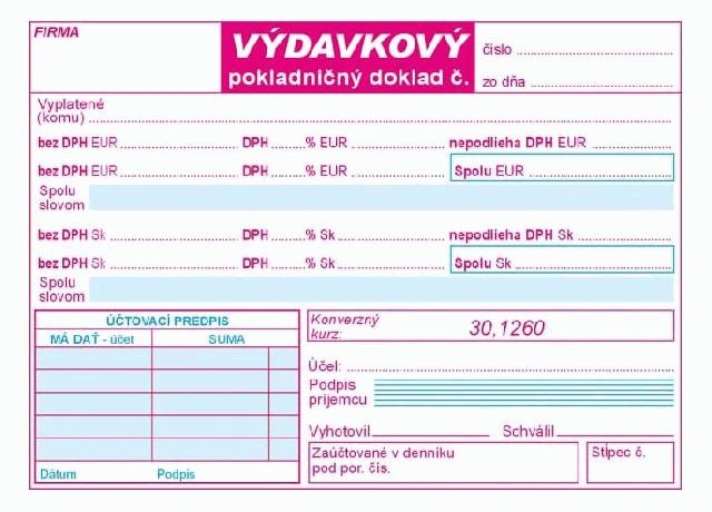 Výdavkový pokladničný doklad 2xDPH dvojfarebný, Igaz 170Skladom > 5 ks1,80 EUR/ ks1,46 EUR bez DPH