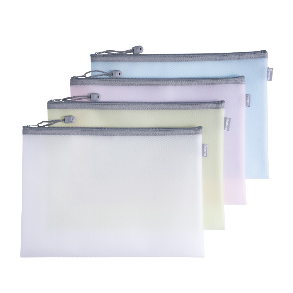 Praktická obálka v jemných pastelových farbách s uzatváraním na zips vo formáte A5.