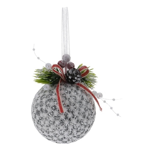 Vianočná guľa 8 cm čipkovaná so stuhou, strieborné trblietky, mix/1ksSkladom > 5 ks3,20 EUR/ ks2,60 EUR bez DPH