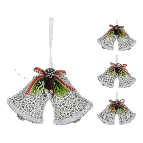 Vianočné zvonky 14 cm čipkované so stuhou, strieborné trblietky, mix /1ksSkladom > 5 ks3,90 EUR/ ks3,17 EUR bez DPH