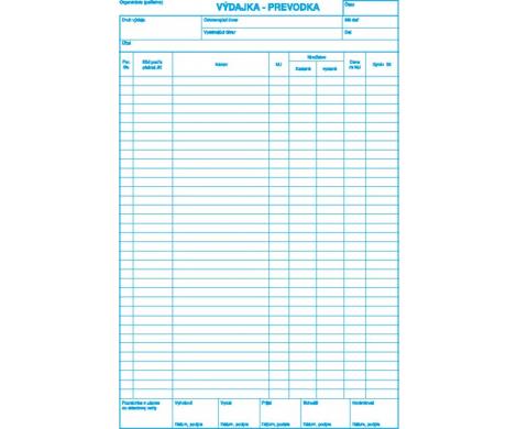 Tlačivo sa používa na výdaj a prevod tovaru s DPH. Obsahuje 100 listov. Sfarbenie papiera biely, modré linky. Formát A4 - blok.